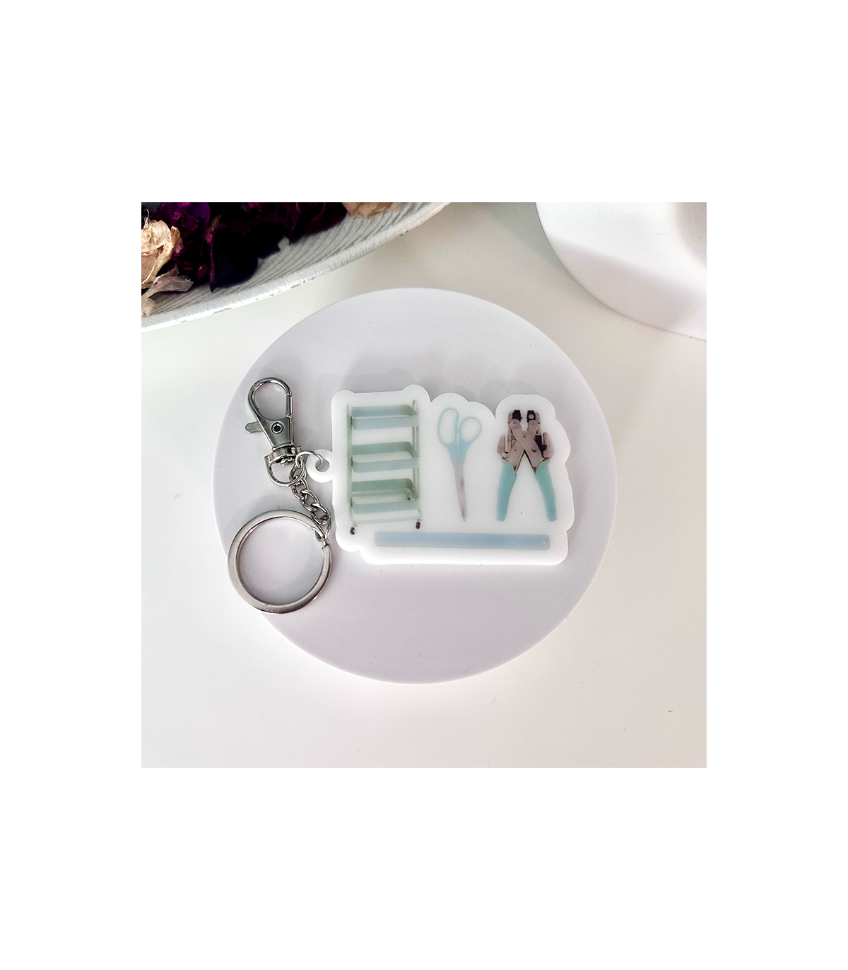 Llavero de metacrilato temática de scrap, se puede poner tanto en las llaves, como para colgarlo del bolso o mochila. Me parece que para adornar un bolso o mochila, quedan super originales.