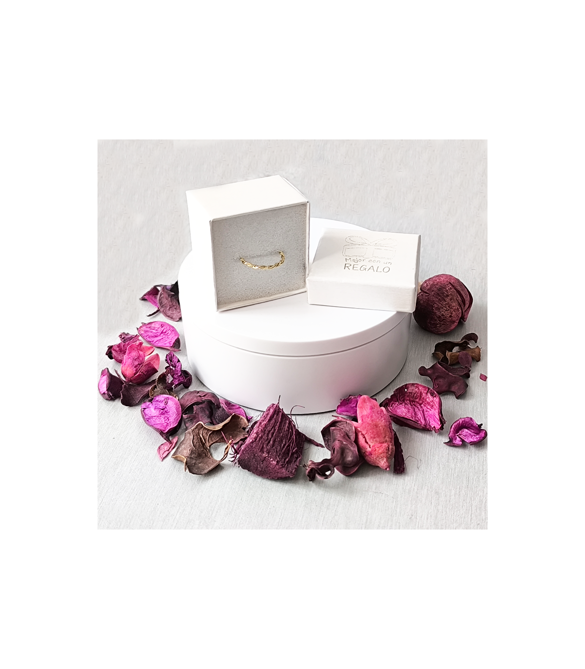 Anillo de ACERO color Dorado, no se pone feo, aunque recomendamos que se limpien con una gamuza para joyas y así se mantienen nuestras joyas siempre limpias.