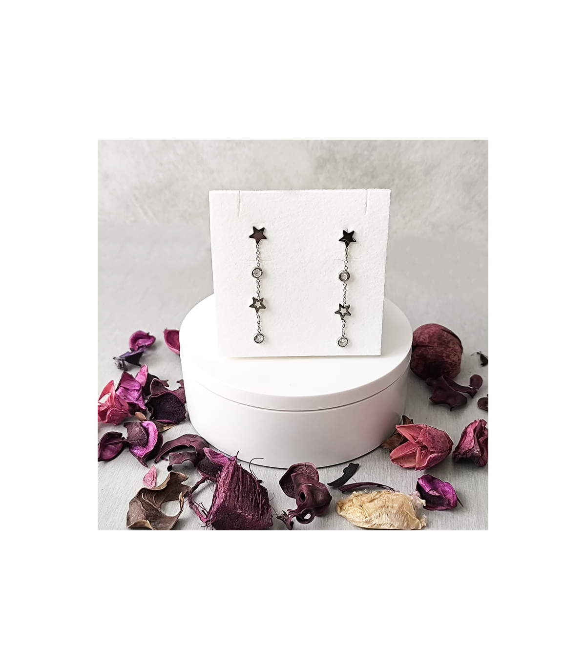 Pendientes largos Plateados Estrellas, super elegantes. Son de Acero Hipoalergenico con lo que no dan alergia.