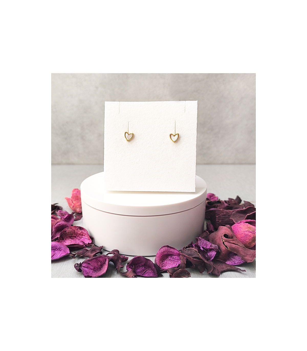 Pendientes Dorados de Corazones Nacarados en blanco, super elegantes. Son de Acero Hipoalergenico con lo que no dan alergia.