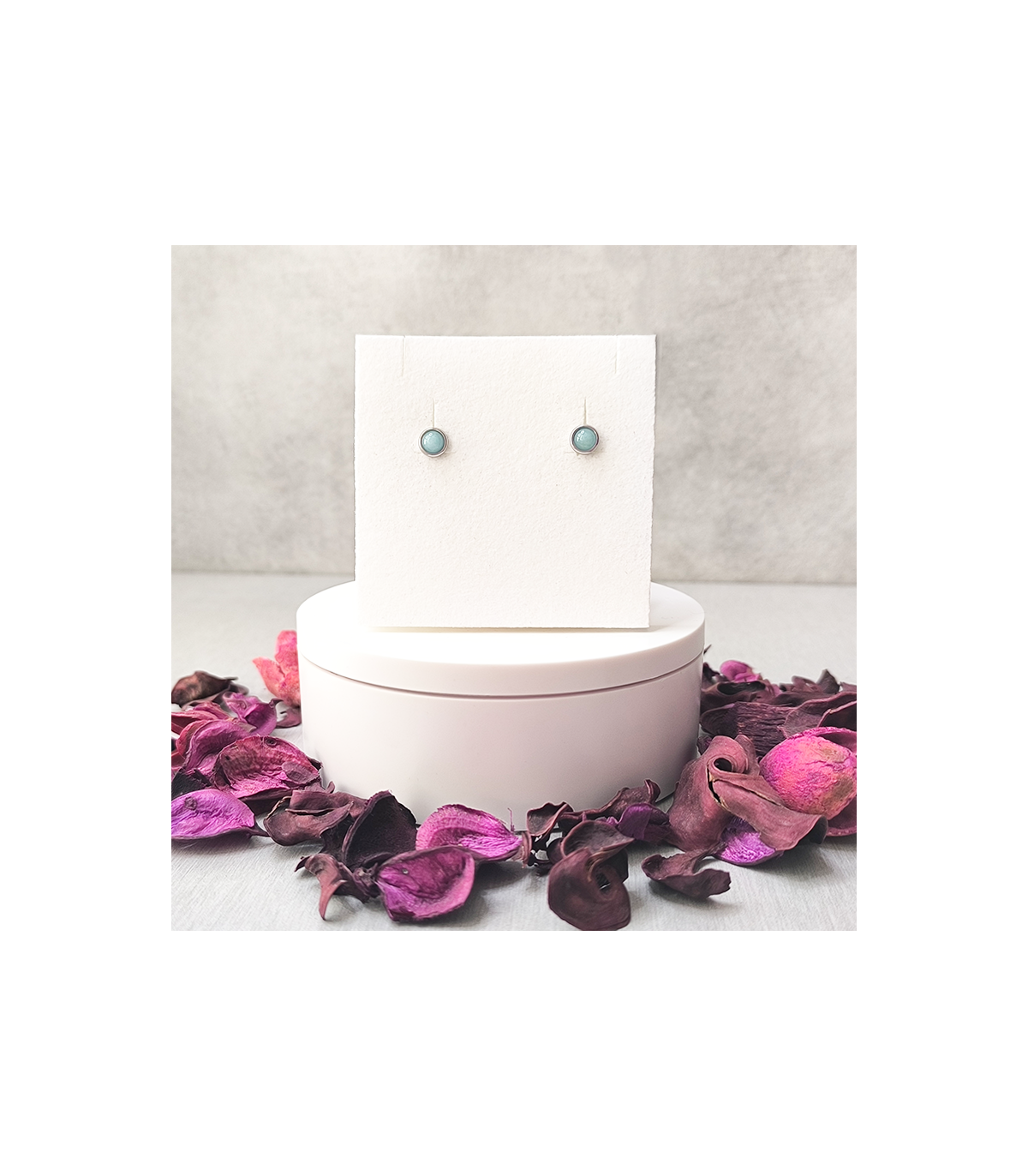 Pendientes Plateados redondos Nacarados en azul verdoso, super elegantes. Son de Acero Hipoalergenico con lo que no dan alergia.