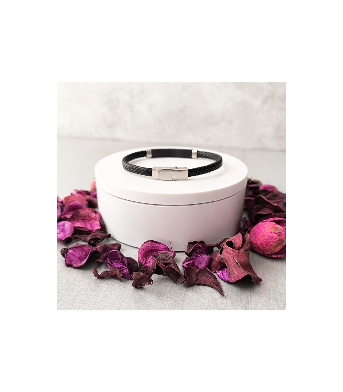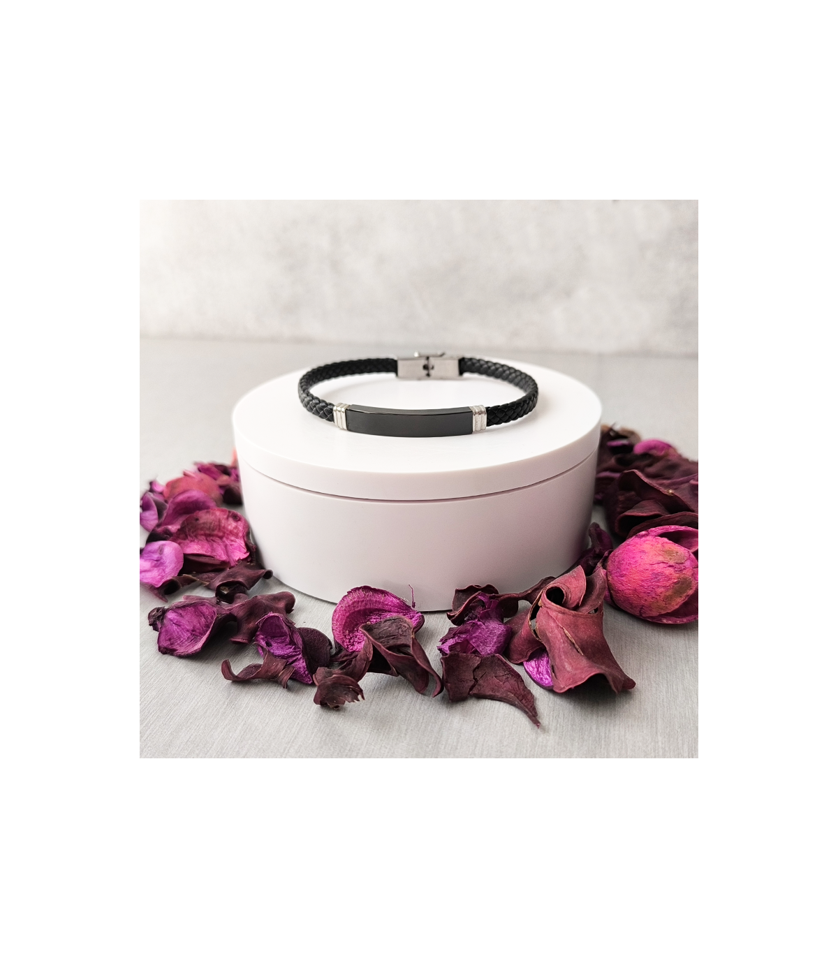 Esclava de Acero Inoxidable Hipoalergénica "Cuero Negro" no da alergia ni se pone fea, aunque siempre recomendamos limpiar las joyas con una gamuza especial, así las mantendrás siempre impecables. Es una esclava con acabado de cuero, super ideal para niños y adultos. Esta tiene la placa en negro.