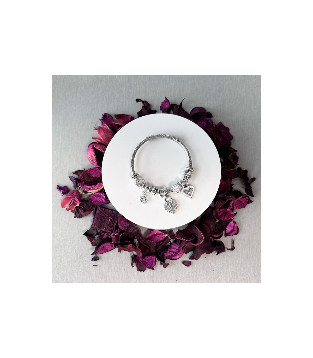 Pulsera - Acero hipoalergenico - Cordón Metálico Plateado con adornos - Corazón con candado de brillantes