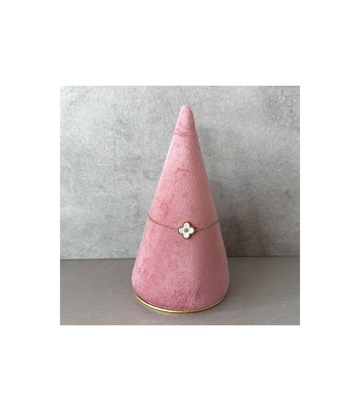 Pulsera de cadena finita de Acero Inoxidable Hipoalergénica "Cadena con una flor nacarada" no da alergia ni se pone fea, aunque siempre recomendamos limpiar las joyas con una gamuza especial, así las mantendrás siempre impecables.