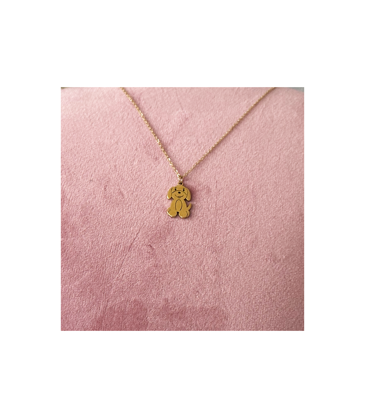 Collar con cadena, lleva de adorno un "Perrito" de Acero Hipoalergénico. En Dorado. Así no dejaras indiferente a otra parte importante de la casa.