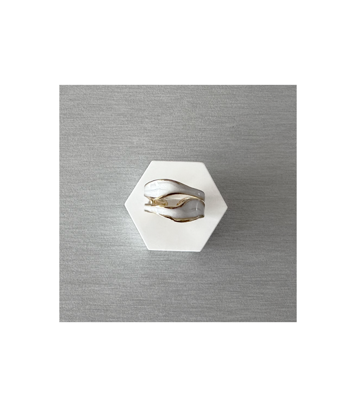 9 Anillo de ACERO inoxidable color Dorado Doble, no se pone feo, aunque recomendamos que se limpien con una gamuza para joyas y así se mantienen nuestras joyas siempre limpias.