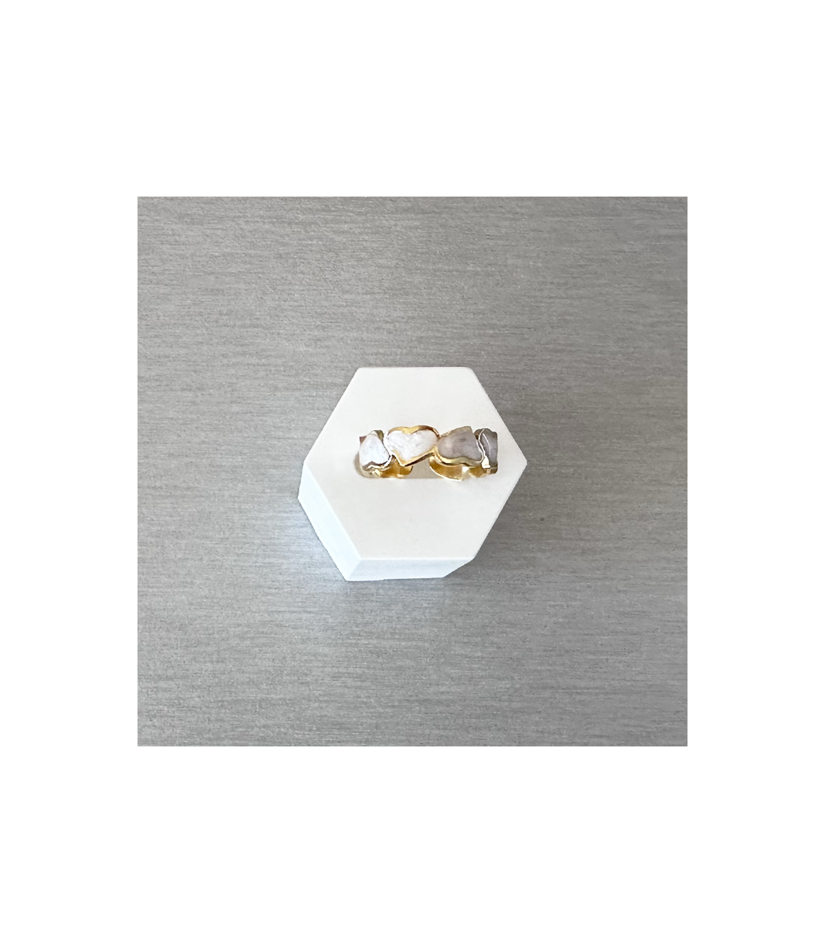 Anillo de ACERO color Dorado con brillantes, no se pone feo, aunque recomendamos que se limpien con una gamuza para joyas y así se mantienen nuestras joyas siempre limpias.