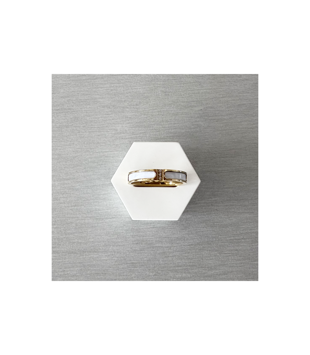 Anillo de ACERO color Dorado con brillantes, no se pone feo, aunque recomendamos que se limpien con una gamuza para joyas y así se mantienen nuestras joyas siempre limpias.