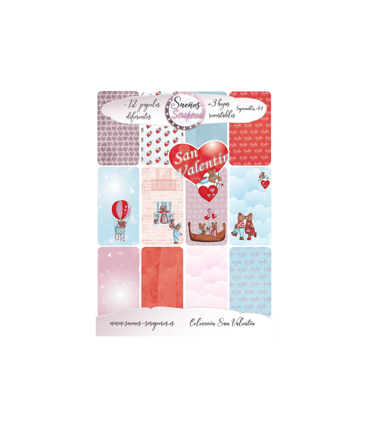 Colección digital de papeles para scrapbooking "San Valentín" en formato VERTICAL Din A-4. Contiene doce papeles diferentes y tres hojas de recortables.