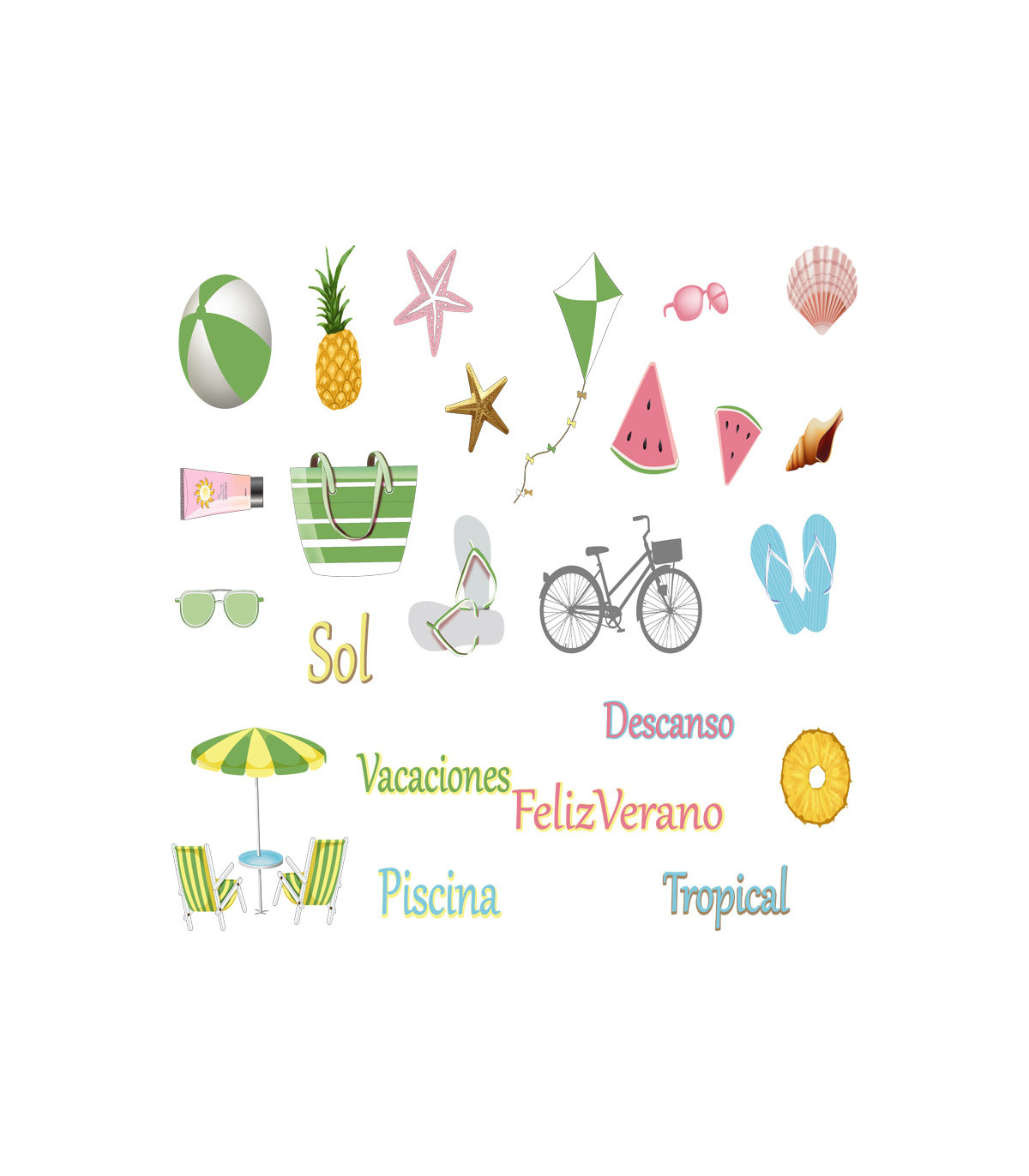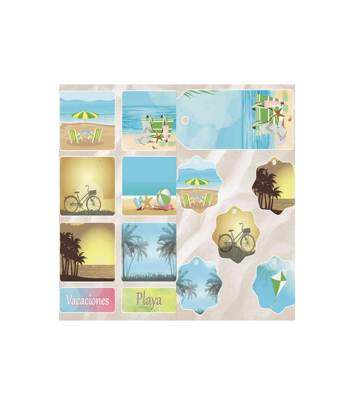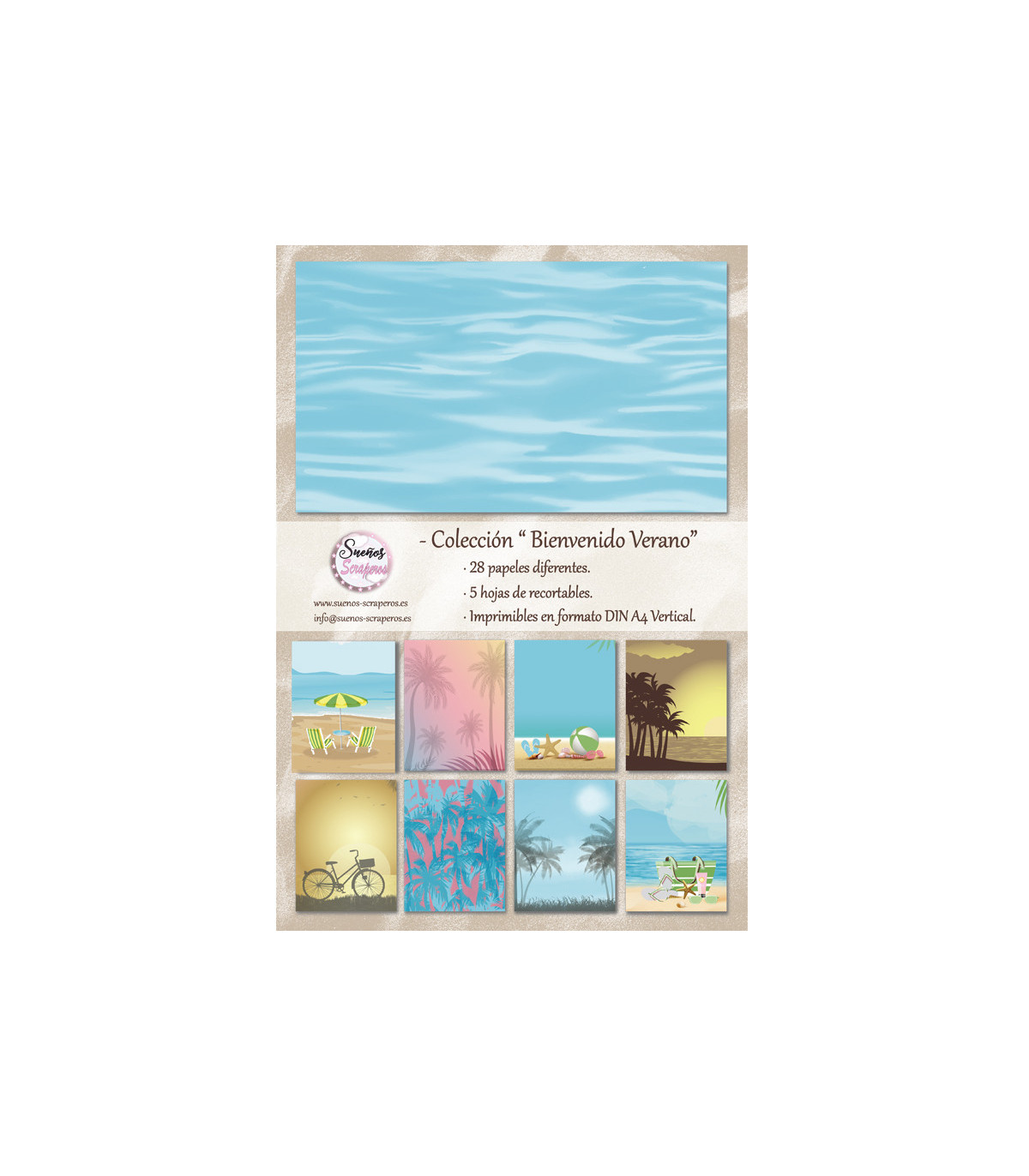 Colección digital de papeles para scrapbooking "Bienvenido Verano" en formato VERTICAL Din A-4. Contiene ventiocho papeles diferentes y cinco hojas de recortables incluidos dos de Die Cut.