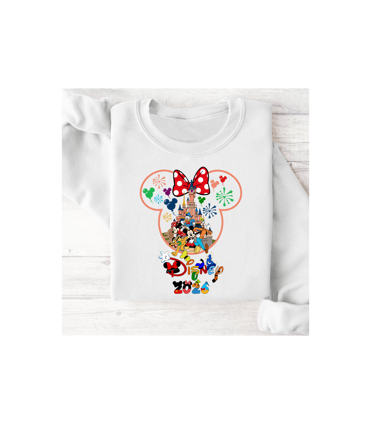 Sudadera en diseño clásico, con cuello, puños y cinturilla de punto canalé. Reforzado en cuello. Colores surtidos con un bonito diseño Disney, pudiéndose personalizar con el nombre de cada miembro de la familia.