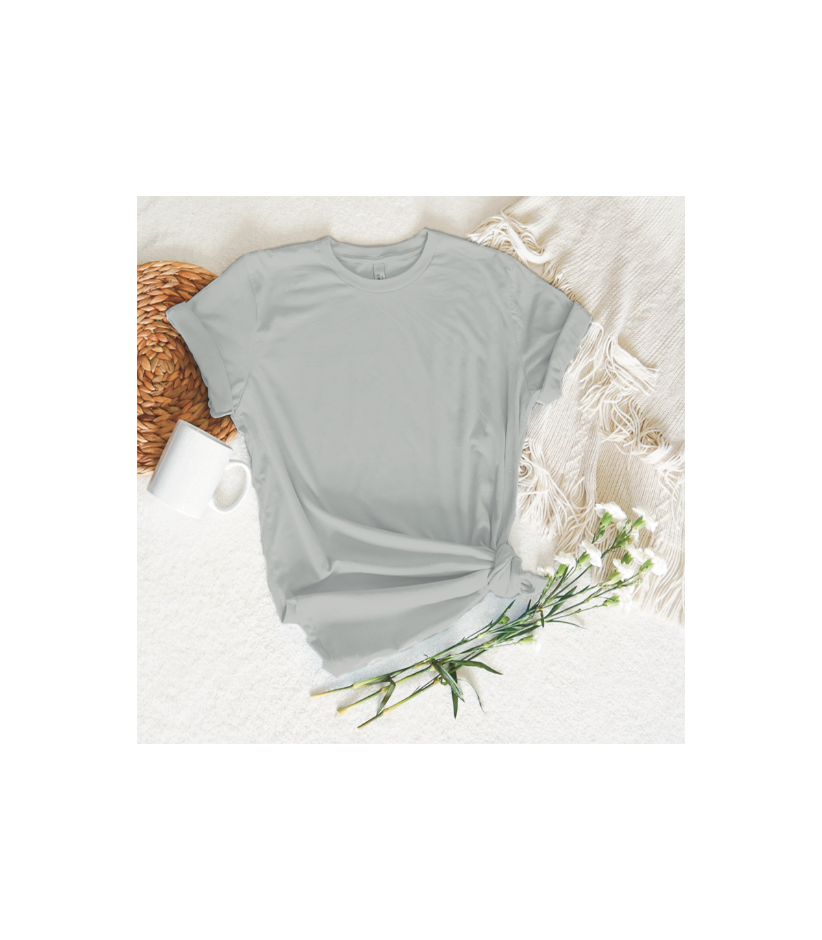 Materiales: 100% algodón, punto liso, 155 g/m². Color gris vigoré 58: 85% algodón / 15% viscosa.