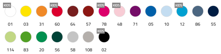 Colores: Para que puedas ver mejor la gama de colores adjuntamos la carta a continuación. Los colores kids también están disponibles para adultos, los demás sólo están en formato adulto.