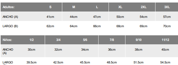 | Tamaño | Medidas (cm) | Peso aprox. |