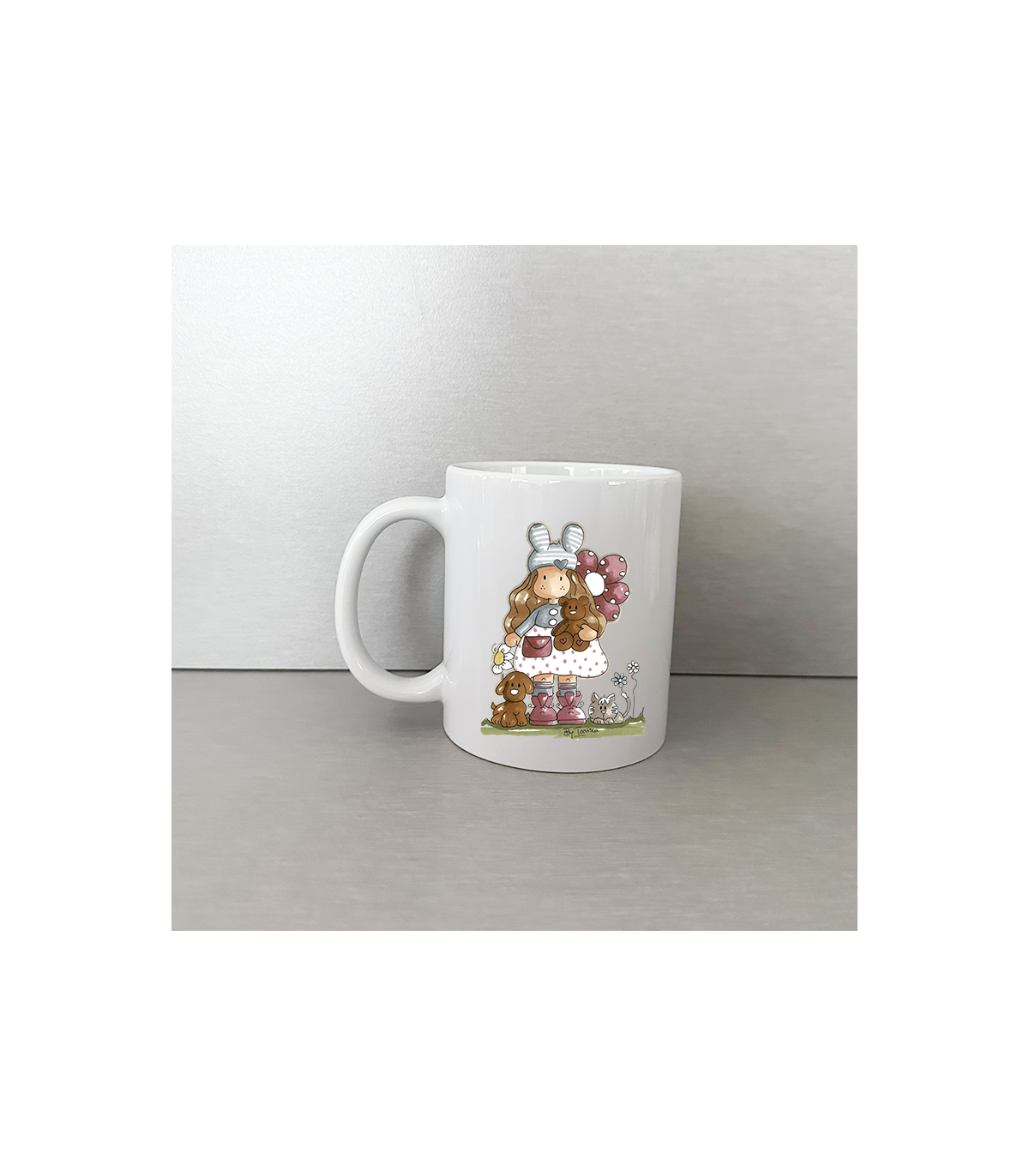 Taza de cerámica "Muñeca Nuria Scrap and tips". Medida: Diámetro 8 cm altura 9,5 cm