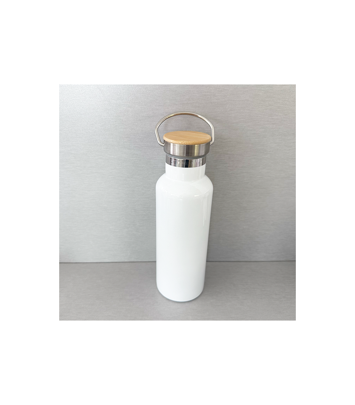 Botella termo con capacidad de 500 ml mantiene el frio 10 horas, y el calor también lo mantiene. Medidas 26 cm de alto. Con tapa de bambú ideal para personalizar.
