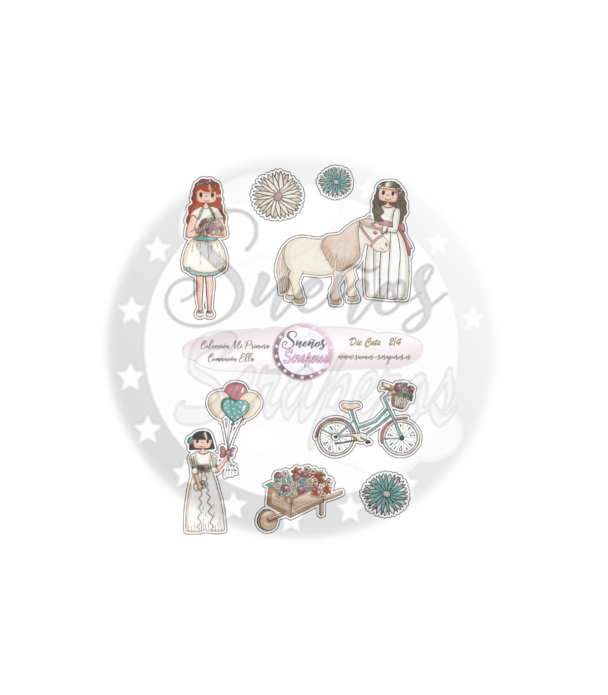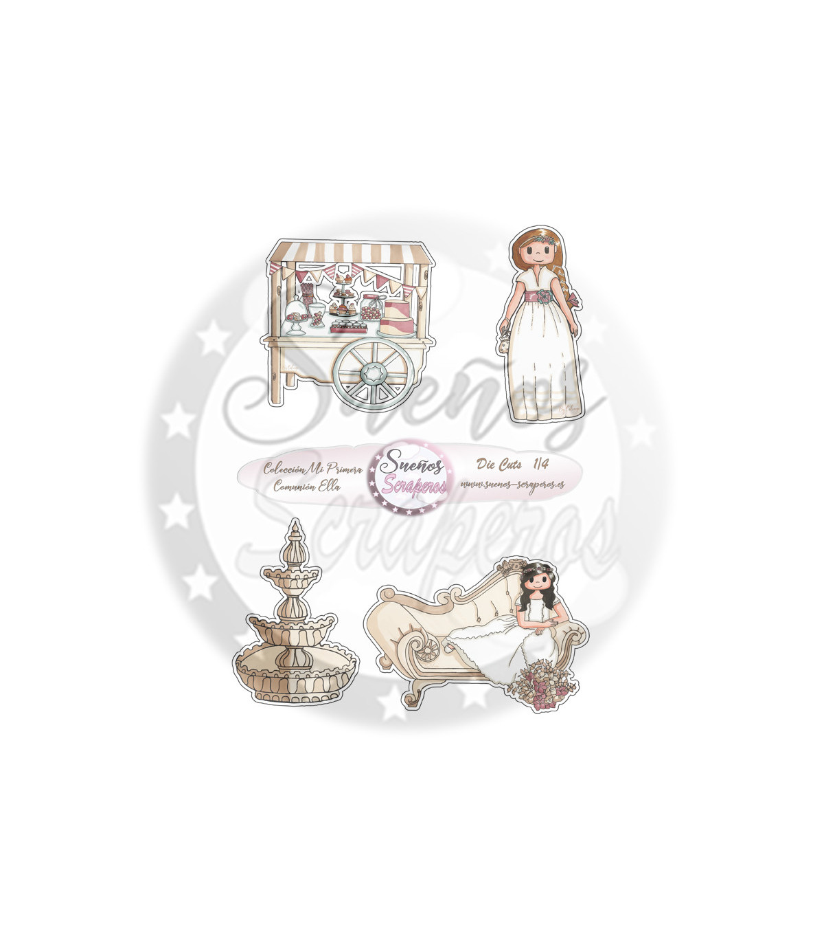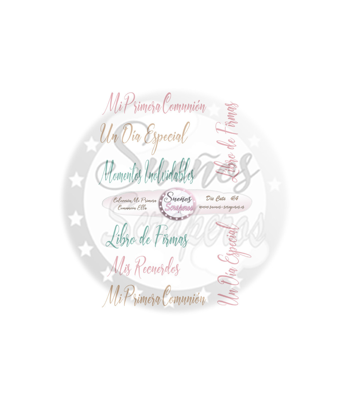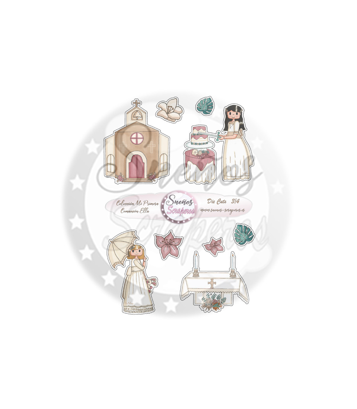 Die cuts Colección "Mi Primera Comunión Ella" son unos recortables para adornar nuestras fotografías y nuestros proyectos por dentro y por fuera. Formato Din A-4. Imprimibles cuatro hojas.
