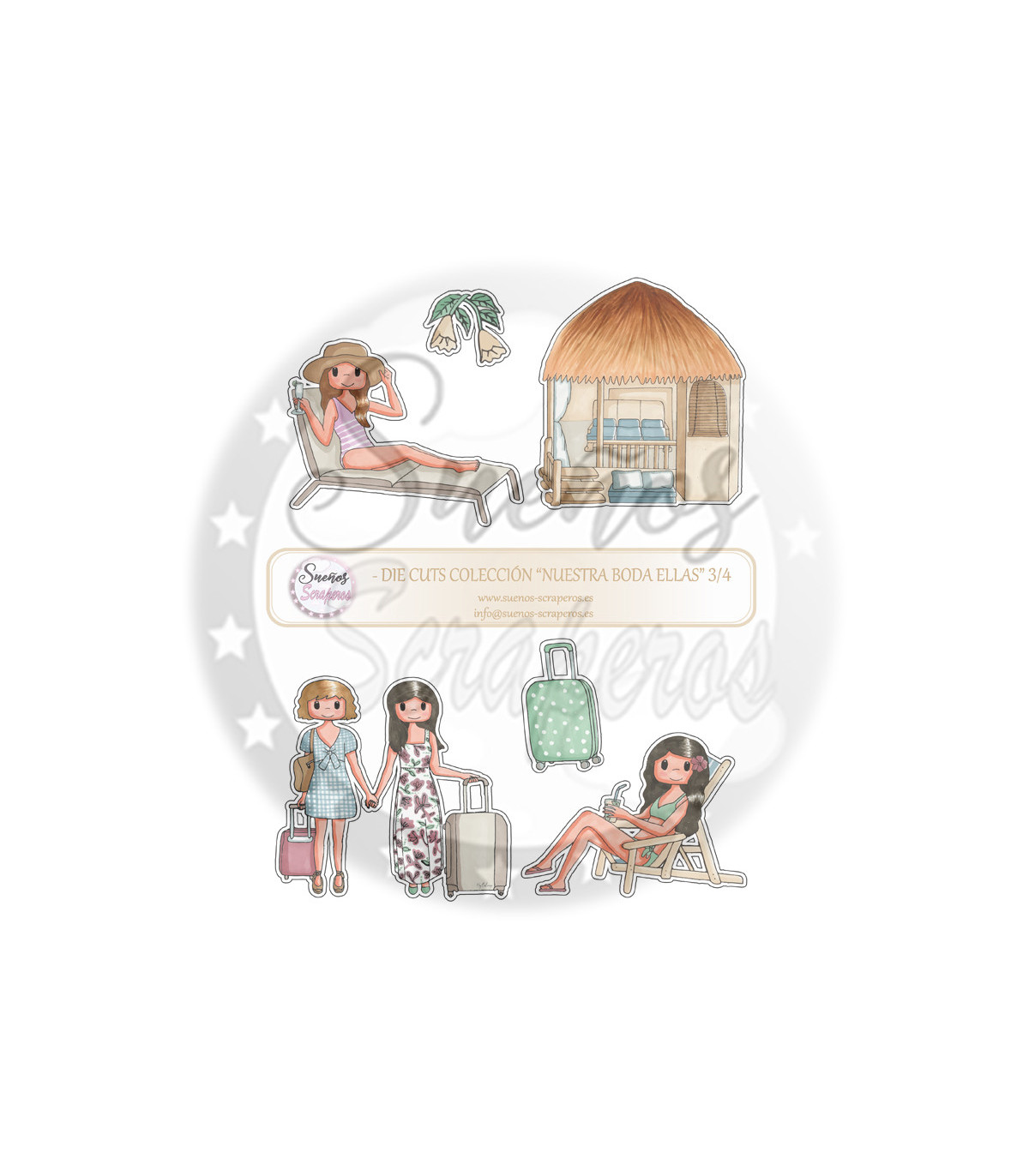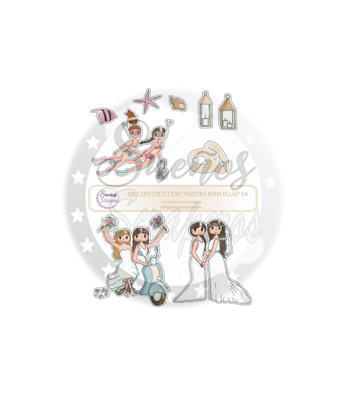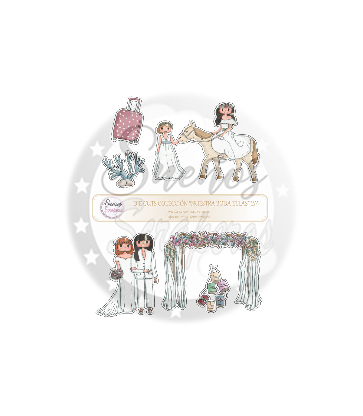 Die cuts Colección "Nuestra Boda Ellas" son unos recortables para adornar nuestras fotografías y nuestros proyectos por dentro y por fuera. Formato Din A-4. Imprimibles cuatro hojas.