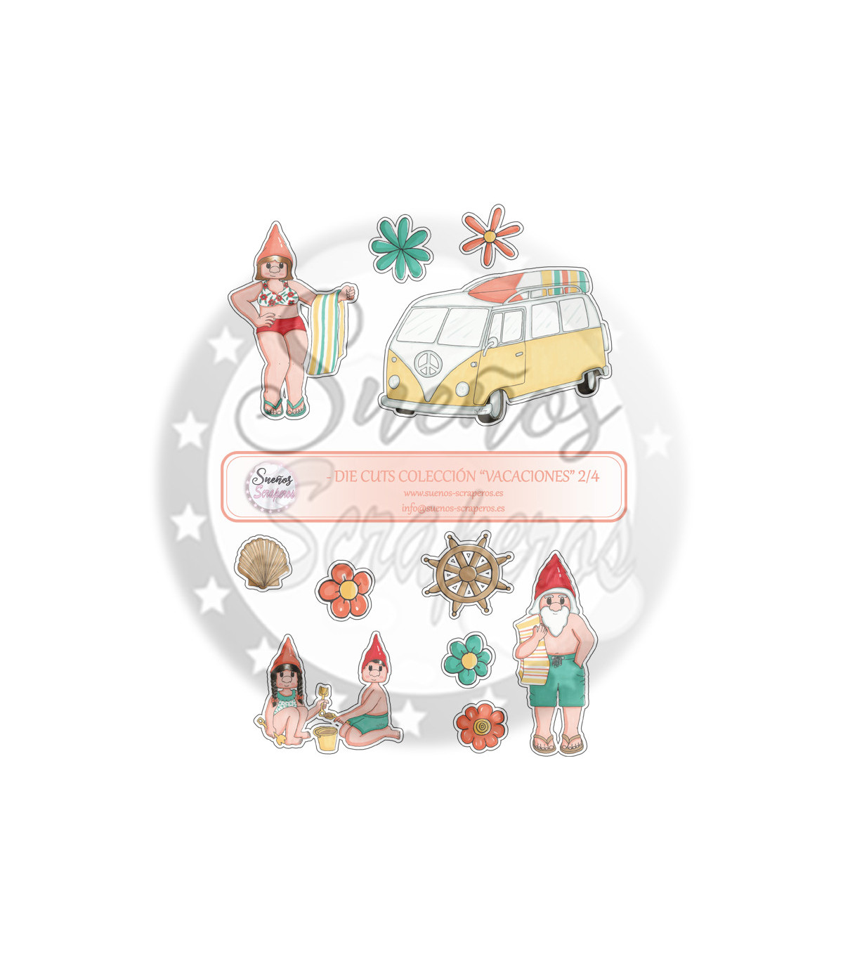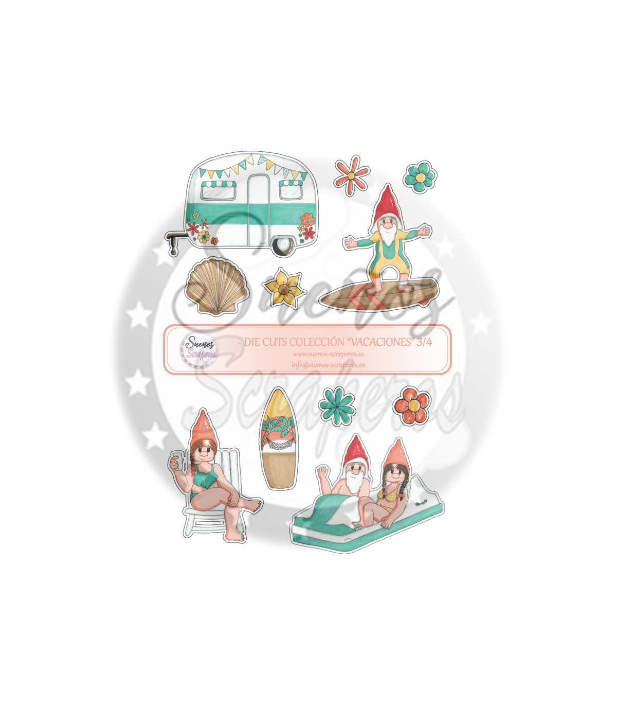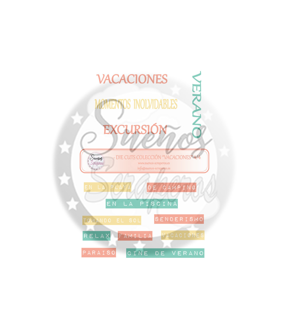 Die cuts Colección "Vacaciones" son unos recortables para adornar nuestras fotografías y nuestros proyectos por dentro y por fuera. Formato Din A-4. Imprimibles cuatro hojas.