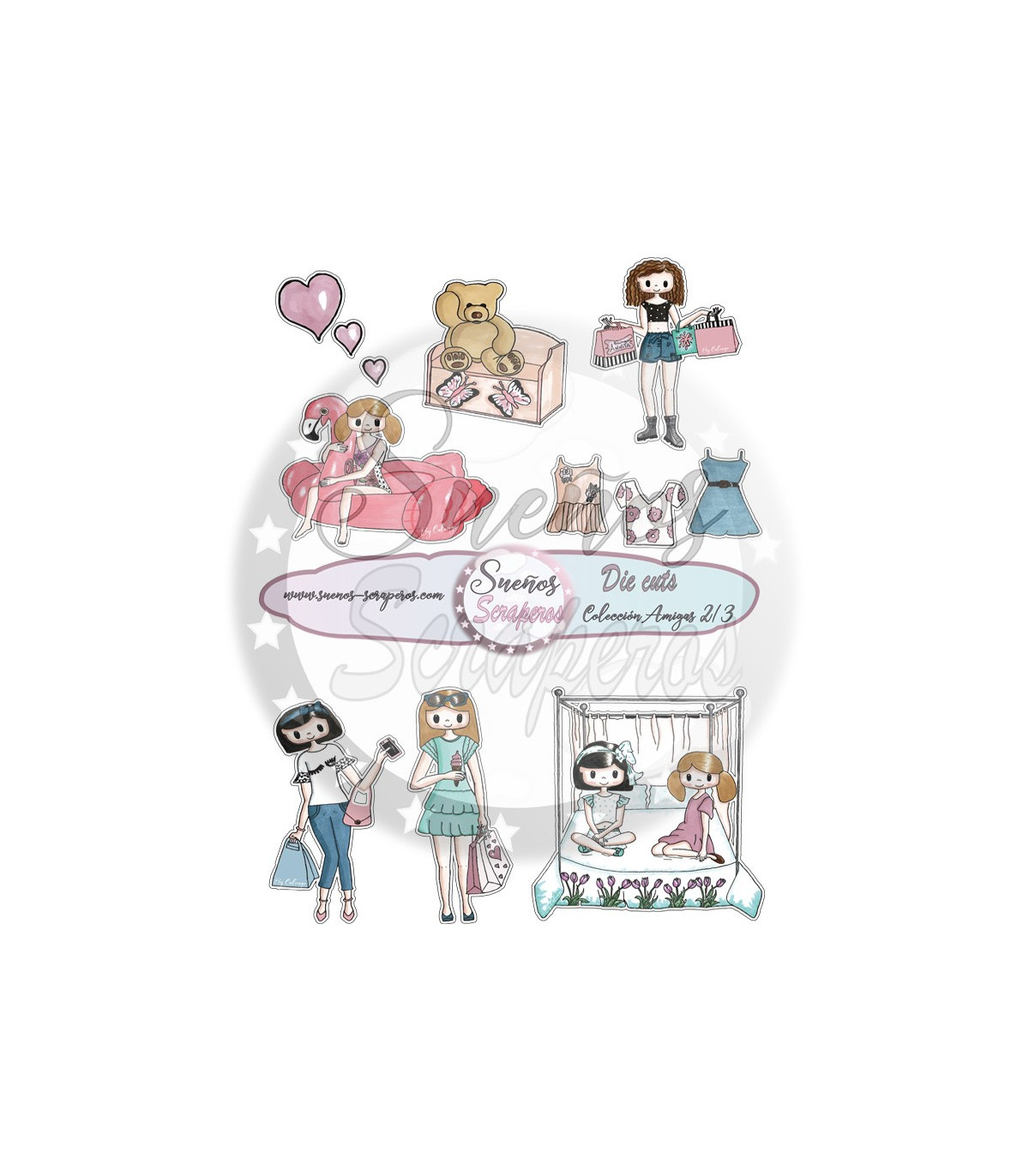 Die cuts Colección "Amigas" son unos recortables para adornar nuestras fotografías y nuestros proyectos por dentro y por fuera. Formato Din A-4. Imprimibles tres hojas.