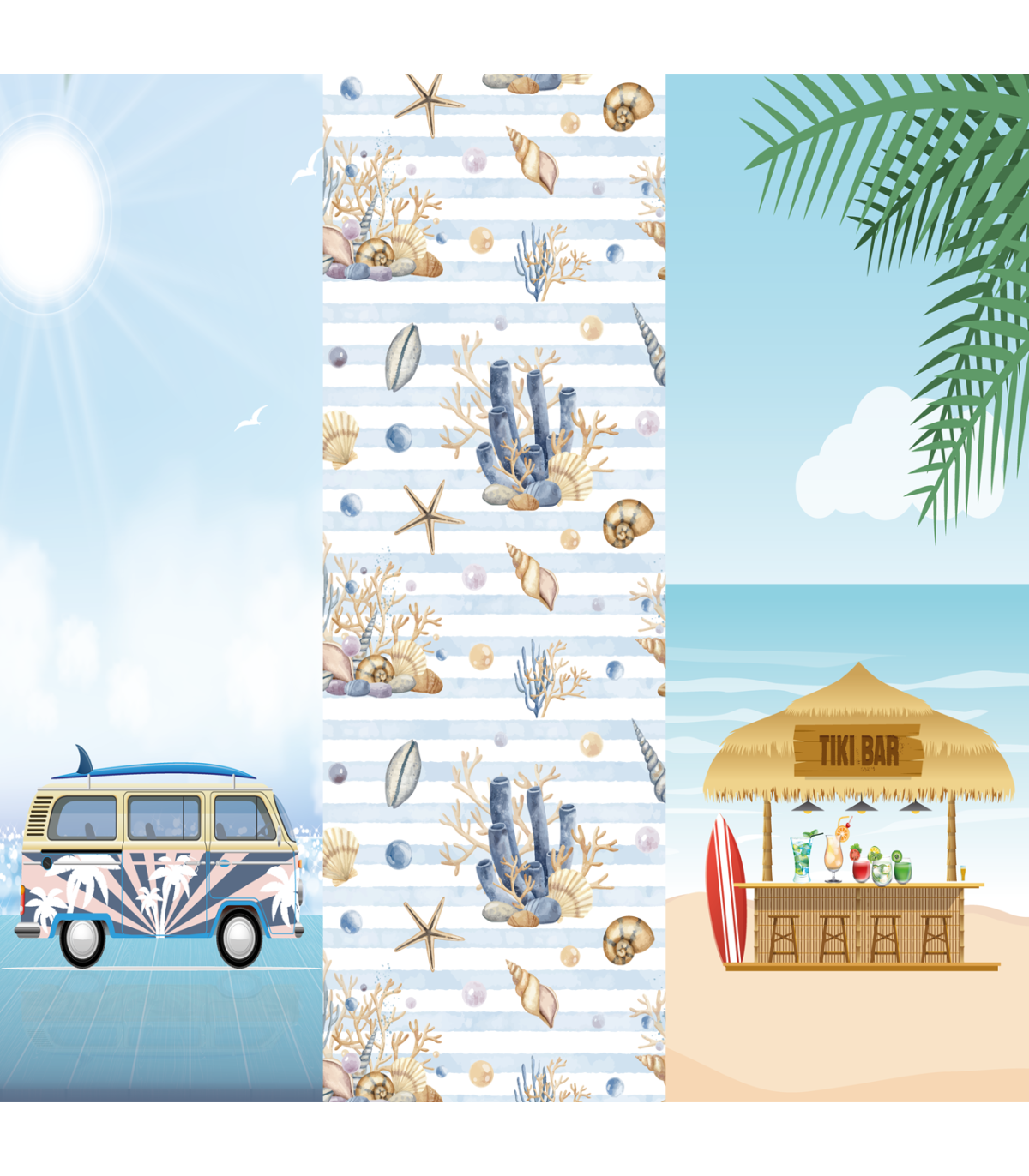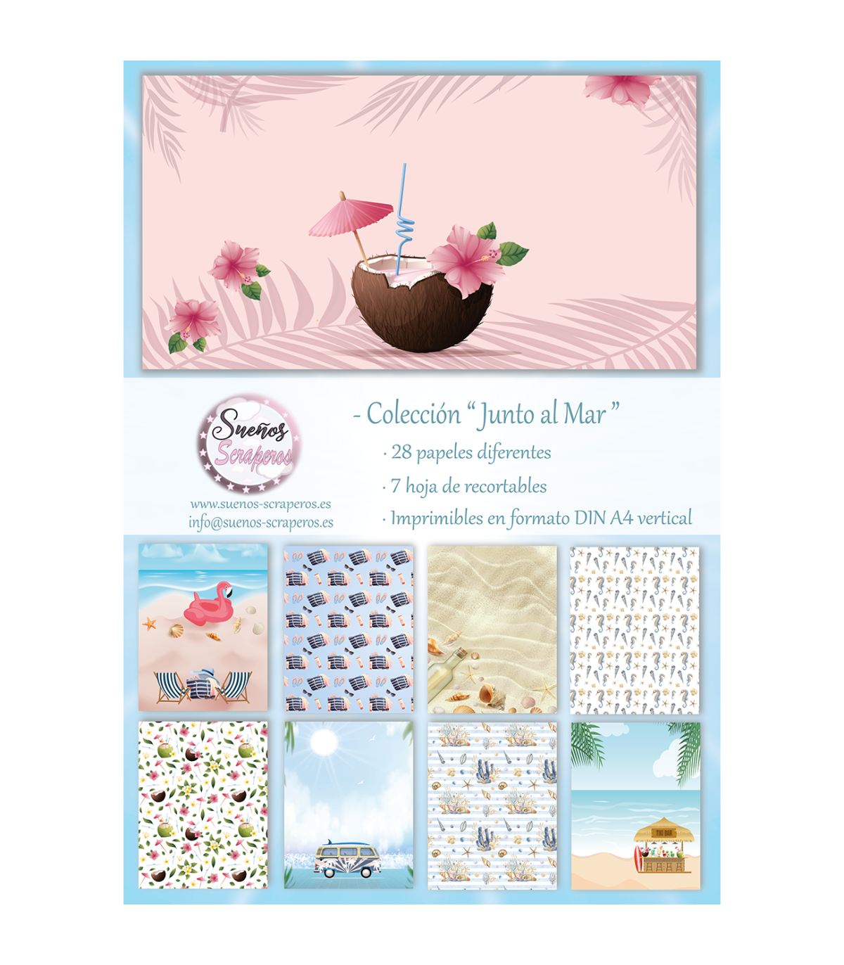 Colección digital de papeles para scrapbooking "Junto al Mar"" en formato VERTICAL Din A-4. Contiene ventiocho papeles diferentes y siete hojas de recortables incluidos tres de Die Cut.