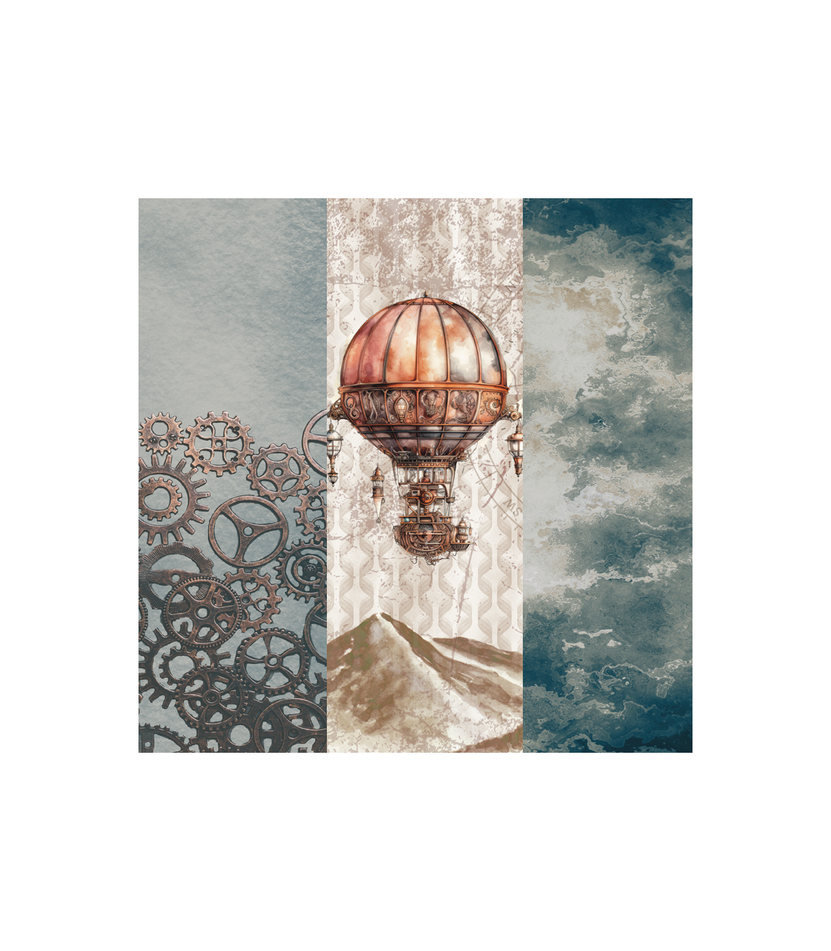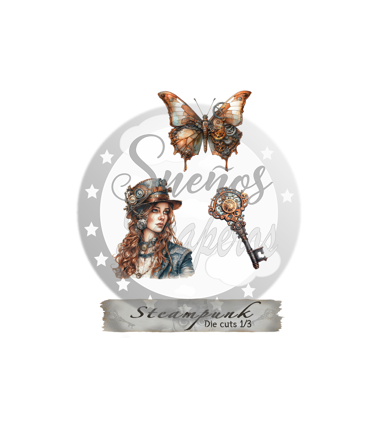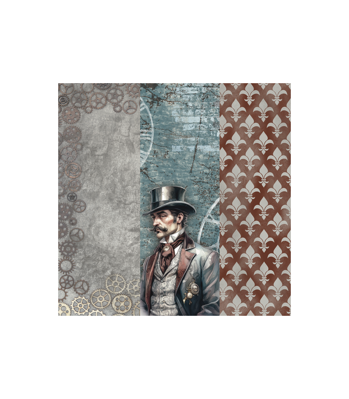 Colección digital de papeles para scrapbooking "Steampunk" en formato HORIZONTAL Din A-4. Contiene ventiocho papeles diferentes y cinco hojas de recortables incluidos tres de Die Cuts.