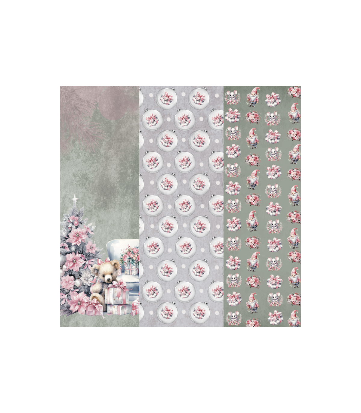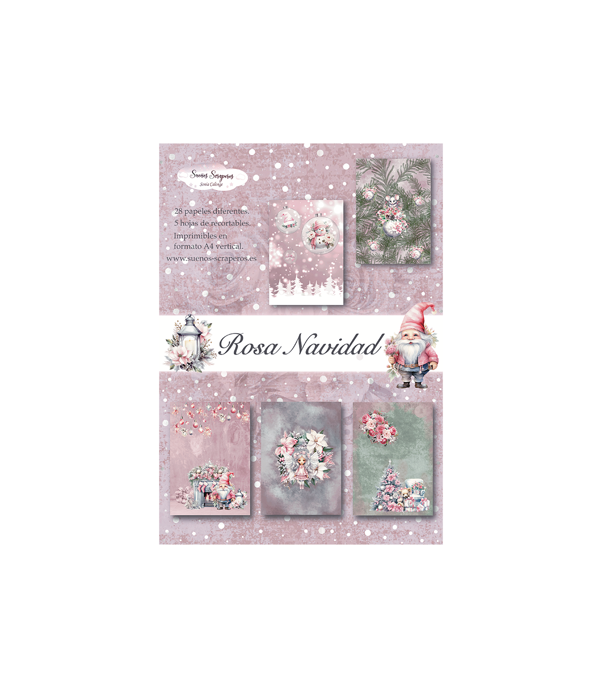 Colección digital de papeles para scrapbooking "Rosa Navidad" en formato VERTICAL Din A-4. Contiene ventiocho papeles diferentes y cinco hojas de recortables incluidos tres de Die Cuts.
