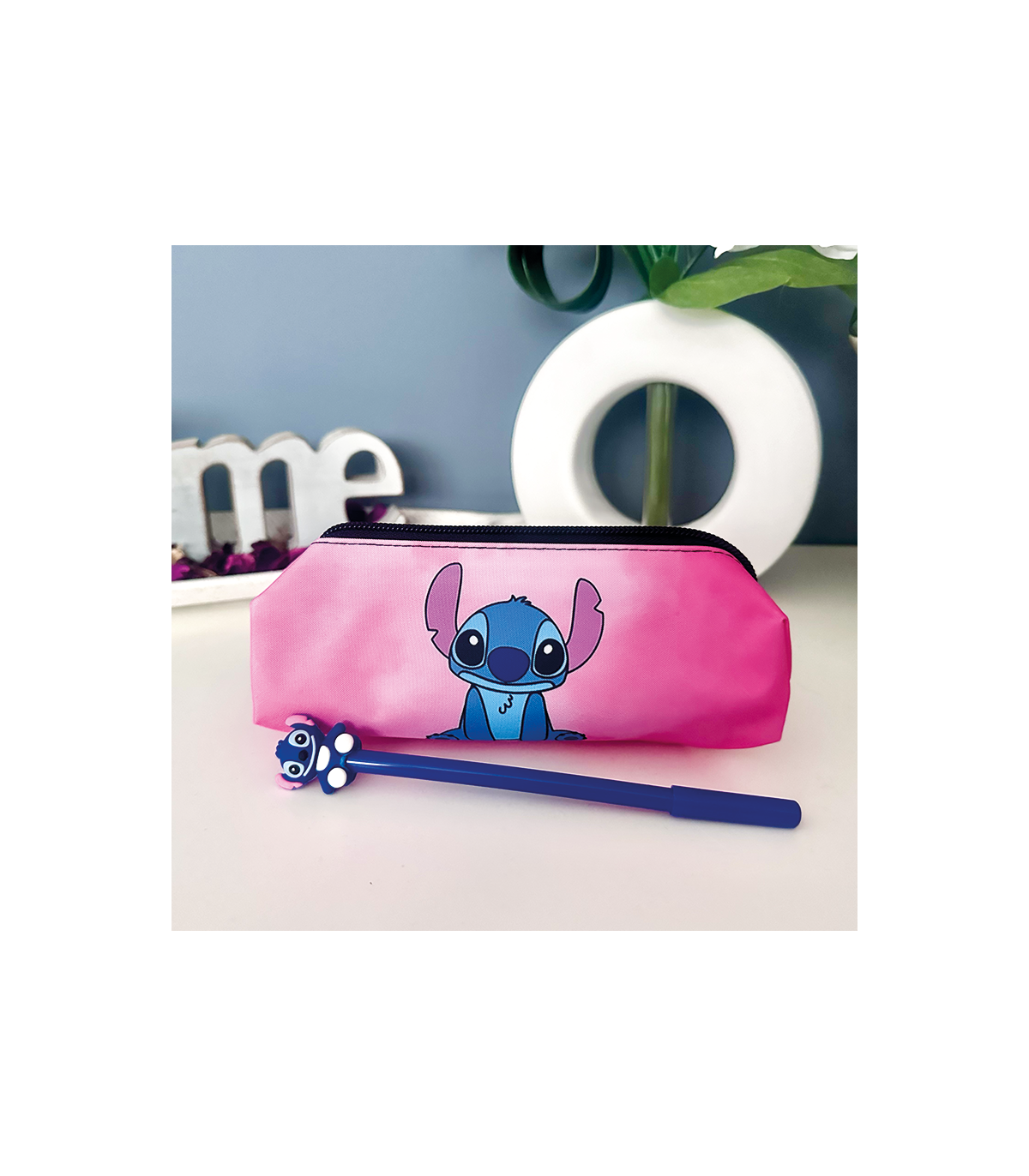 Estuche "Stitch Rosa", tiene bastante capacidad, viene con un bolígrafo de Stitch super chuli.