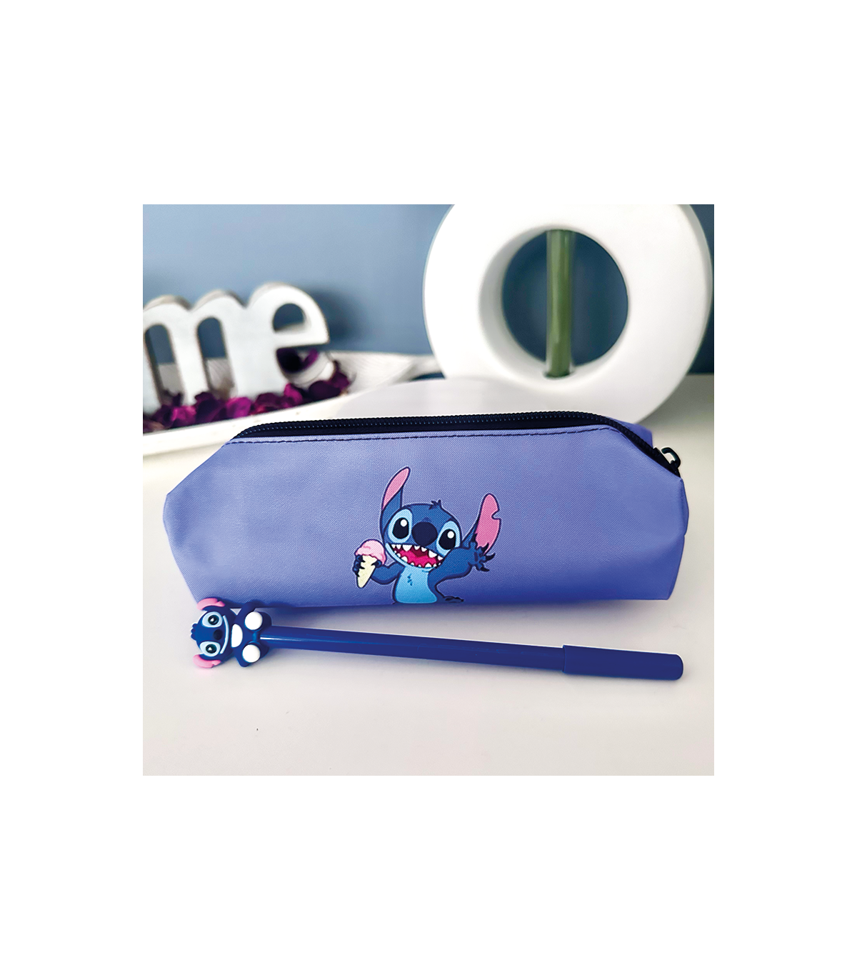 Estuche "Stitch Morado", tiene bastante capacidad, viene con un bolígrafo de Stitch super chuli.