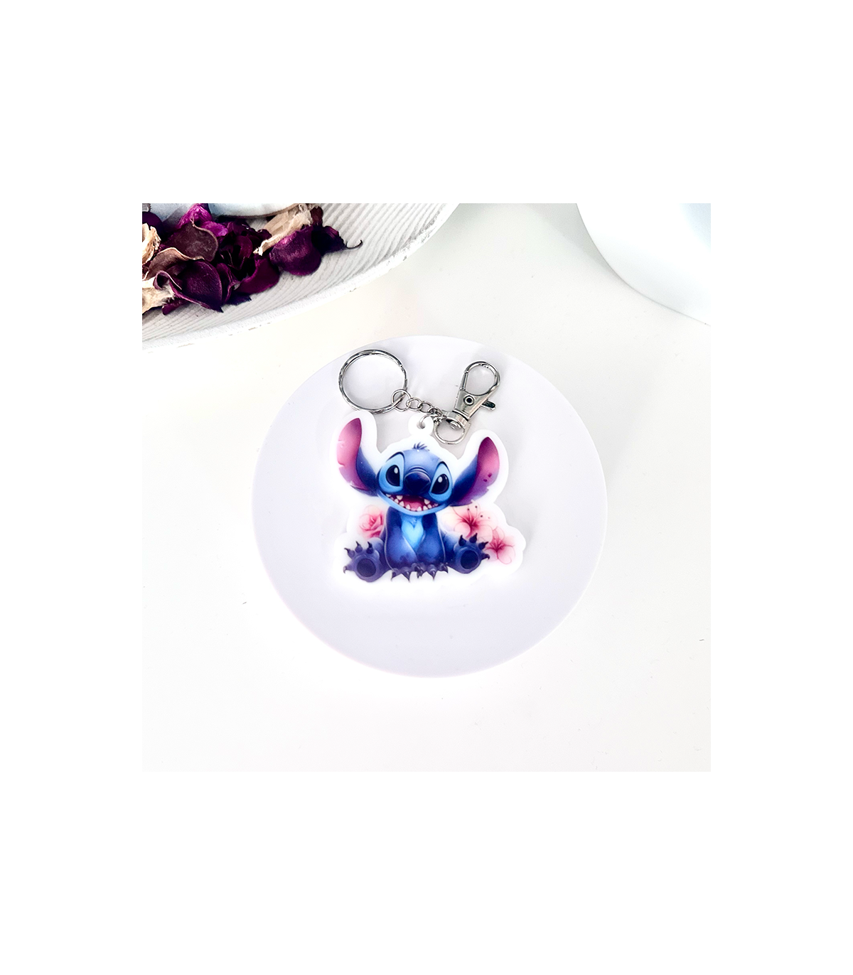 Llavero "Stitch metacrilato" lleva la anilla para llaves y también el mosquetón, para colgarlo del bolso, mochila, cartera etc... Material de metacrilato.