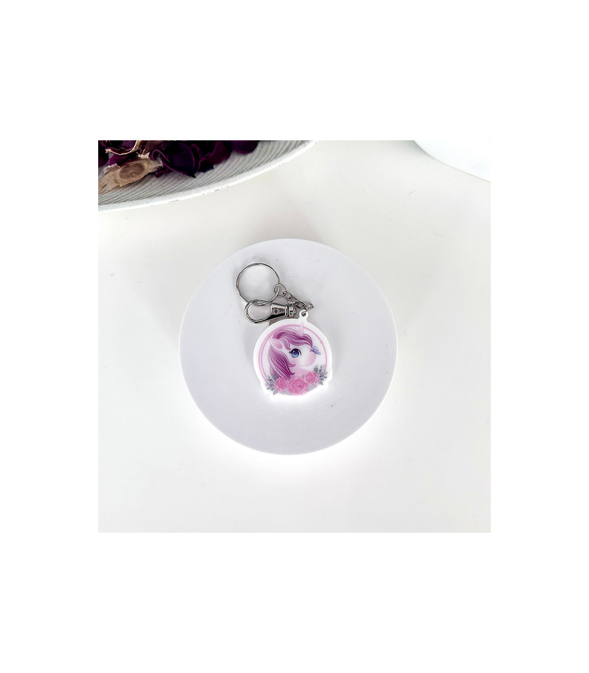 Llavero "Unicornio" lleva la anilla para llaves y también el mosquetón, para colgarlo del bolso, mochila, cartera etc... Material de metacrilato.