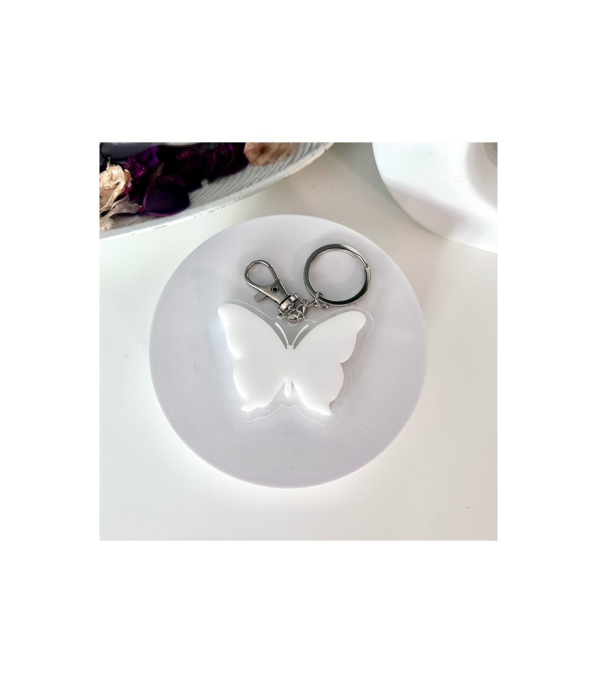 Llavero "Mariposa Blanca" lleva la anilla para llaves y también el mosquetón, para colgarlo del bolso, mochila, cartera etc... Material de metacrilato.