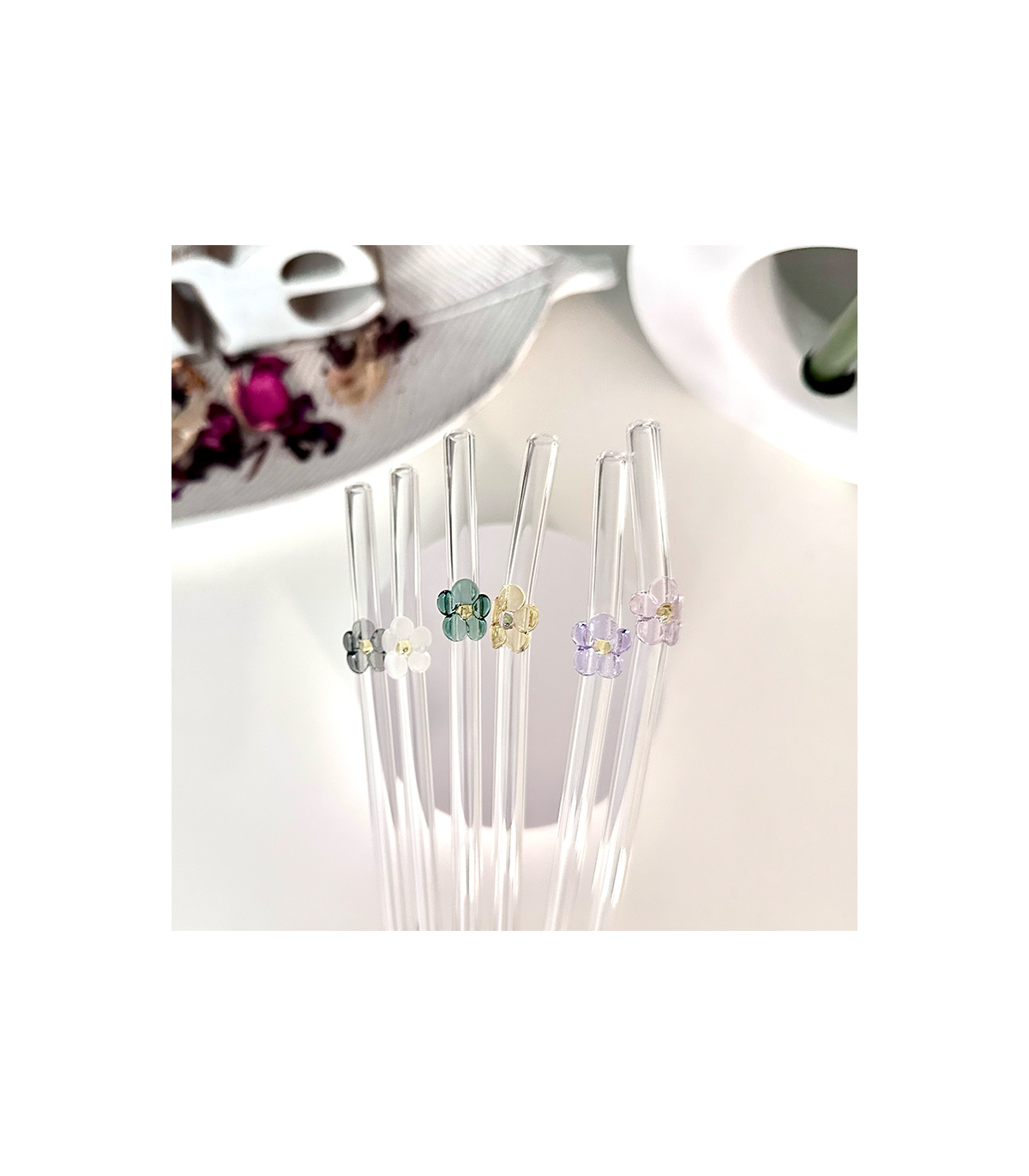 Pajita de Cristal con forma de "Flor" se puede limpiar con un limpia pajitas que incluye debajo del agua.