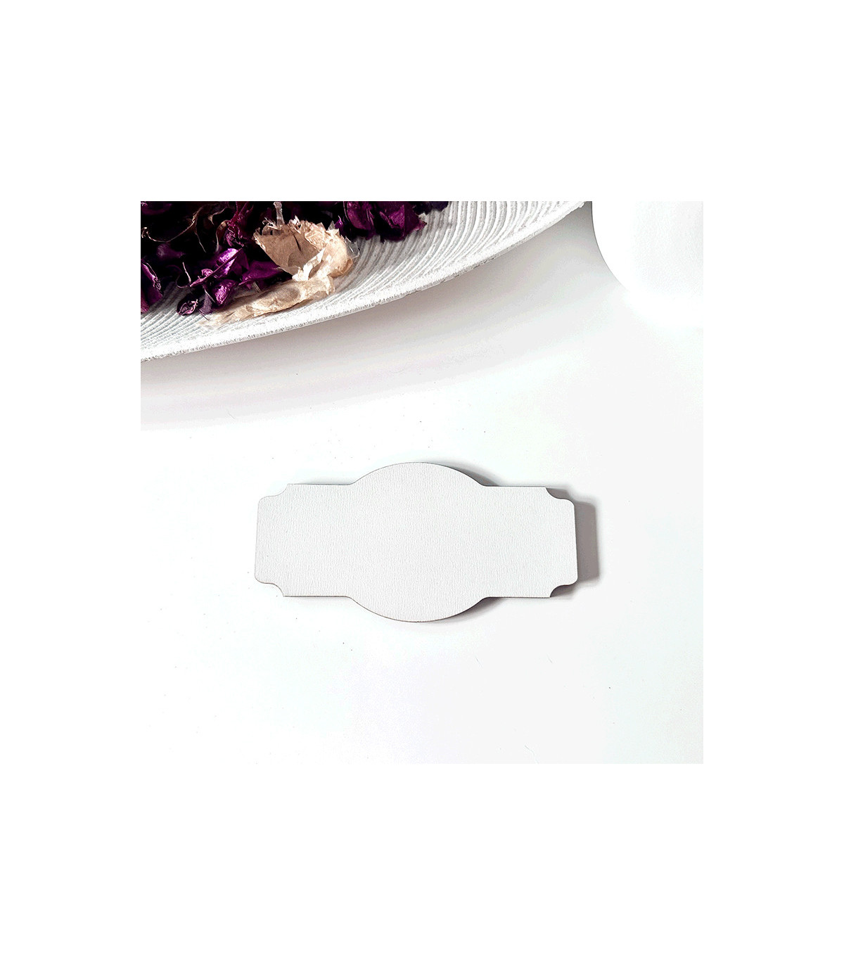 Marco "Marco-1 Ovalado", Madera Blanca de 3mm, sirve para decorar las portadas de nuestros proyectos. MEDIDAS: 12,5 x 6 cm