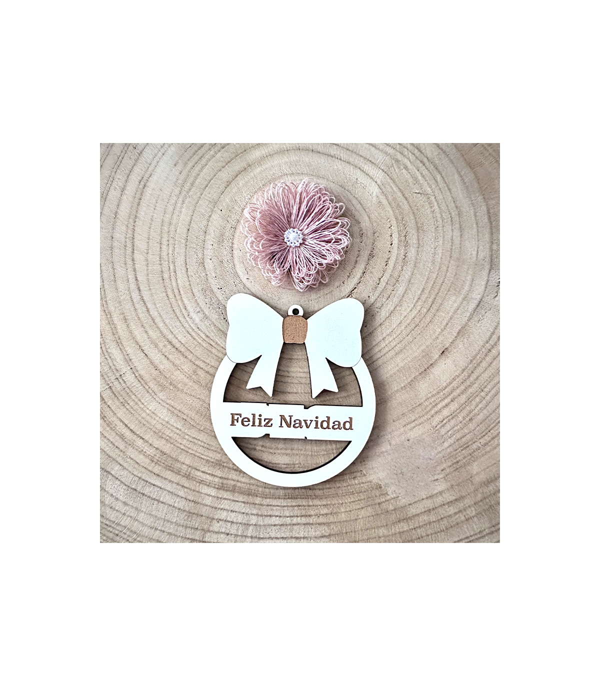 Adorno Navidad "Bola Lazo" personalizada con el nombre que se quiera. Medida: 8,5 x 9,5 cm