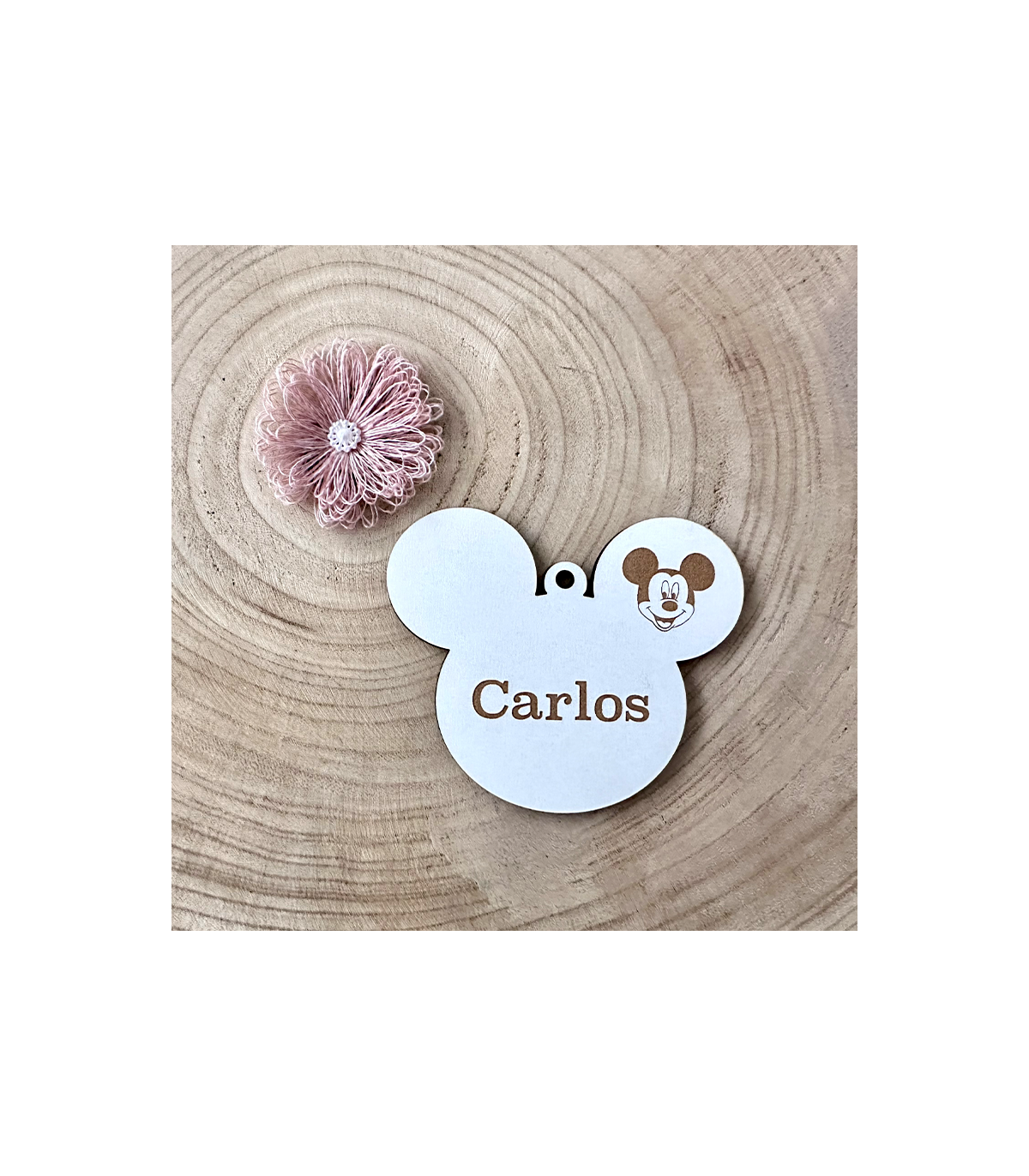 Adorno "Mickey" personalizada con el nombre que se quiera. Medidas: 10 x 8,5 cm